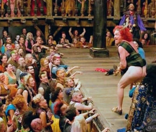 The concept grafts a 1970s punk vibe onto the Elizabethan era. When young Shakespeare says goodbye to his family in Stratford and sets off for the big city, the soundtrack brazenly plays The Clash song London Calling.