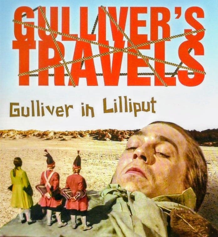 Gulliver’s capture by the idiot Lilliputians mirrors your imprisonment by fascist soldiers; you realize that imaginary literature illuminates the real world.